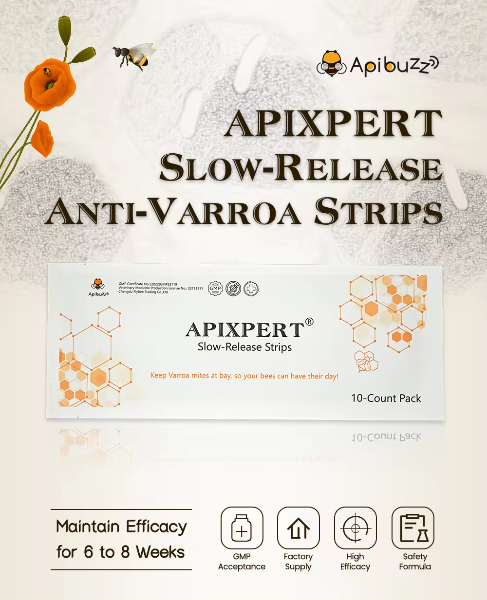 Apixpert is a single application treatment and the premium option for the control of varroa mites. This is a slow release strip that maintains effectiveness for 6 - 8 weeks, which is a full course.