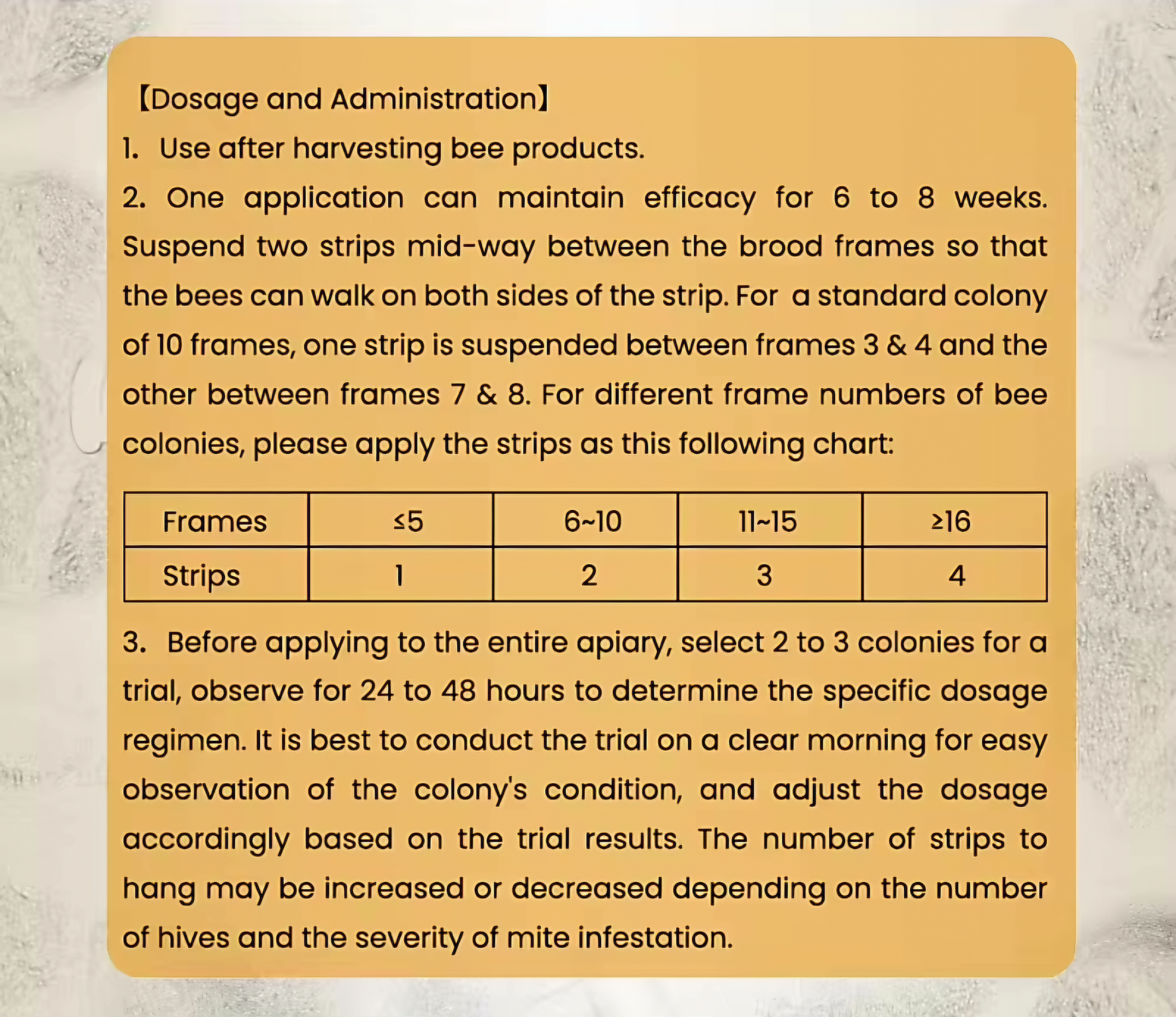 It's extensively used throughout Europe and USA for its ease of use and time efficiency. Using a single application treatment reduces the amount of travel to apiaries and time spent going through hive, making it a favourite for commercial operations.